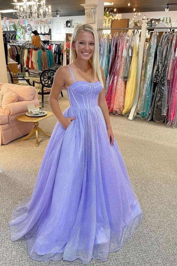 Lavender A Line Spaghetti Straps Long Prom Dresses, Formal Evening Dresses DM1823