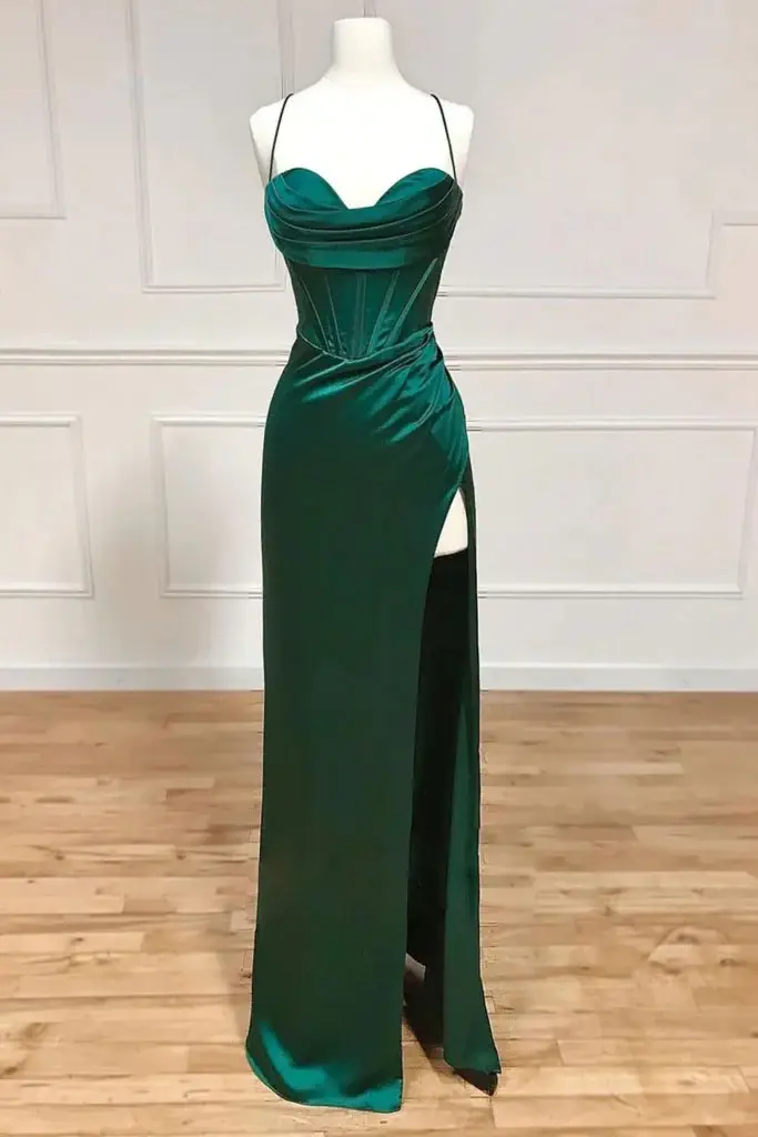 Simple A Line Long Prom Dresses, Spaghetti Straps Split Formal Evening Dresses DMP340