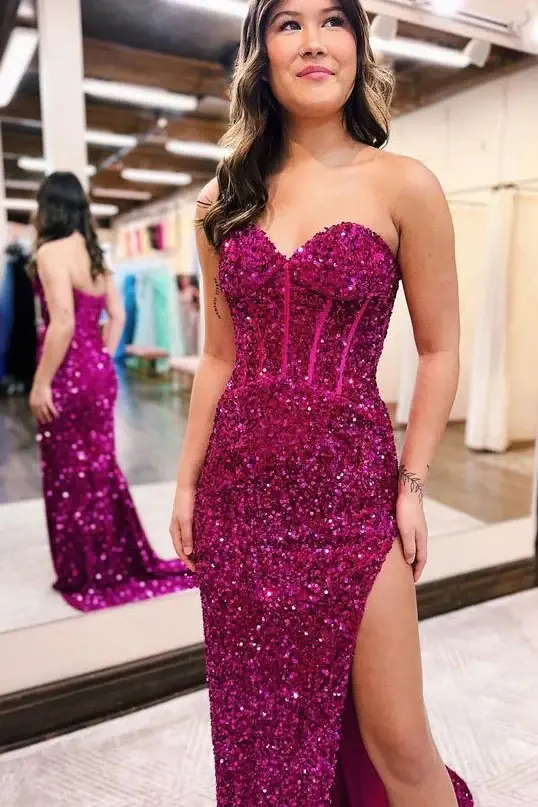 Elegant Mermaid Sweetheart Sequined Long Prom Dresses With Slit DMP300