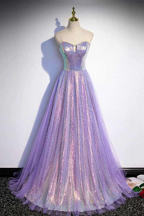 Lovely Purple Tulle and Sequins Long Sweetheart Prom Dress, Evening Dresses DM1961
