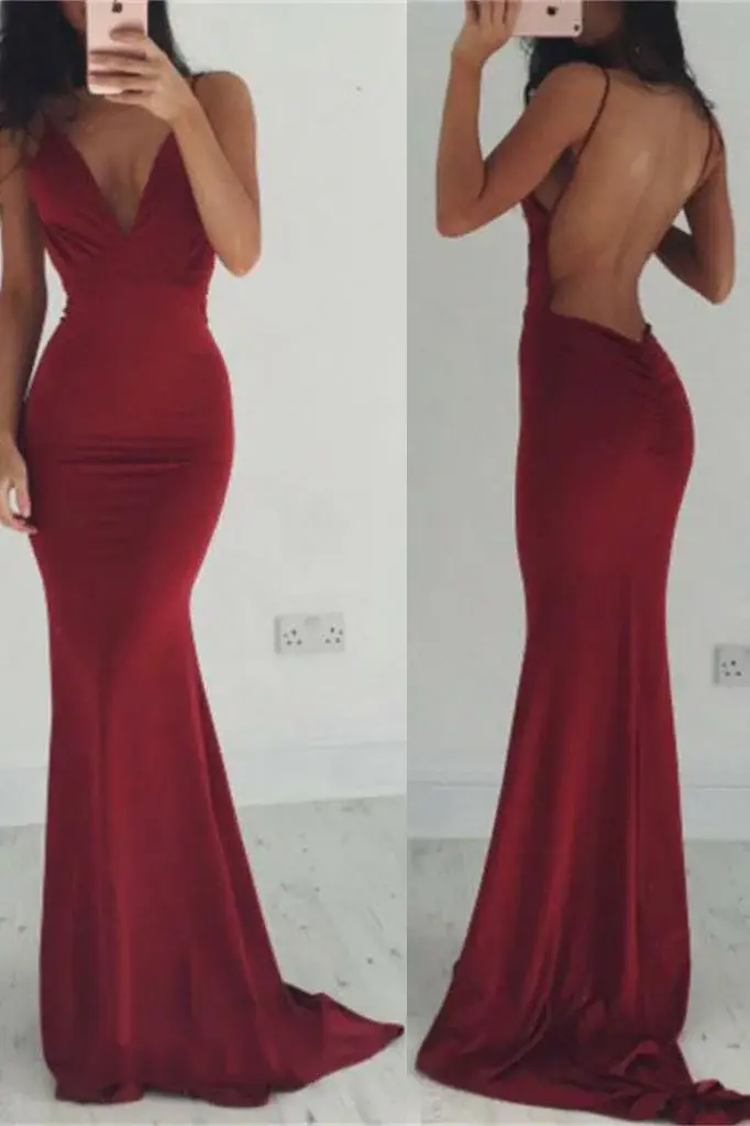 Sexy Burgundy Mermaid Long Spaghetti Straps Prom Dresses DMD81