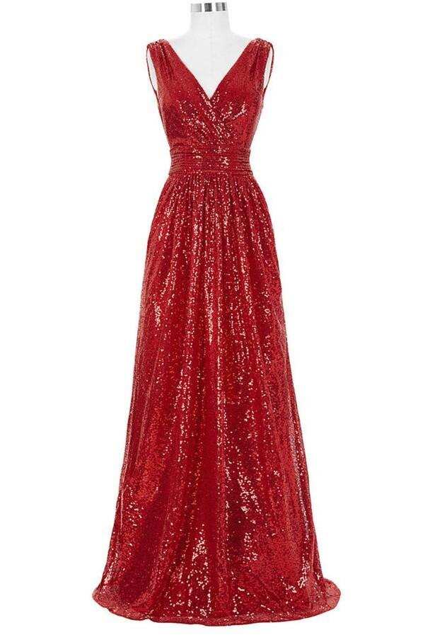 Red Sparkly V-neck Long A-line Backless Cheap Plus Size Prom Dresses K742