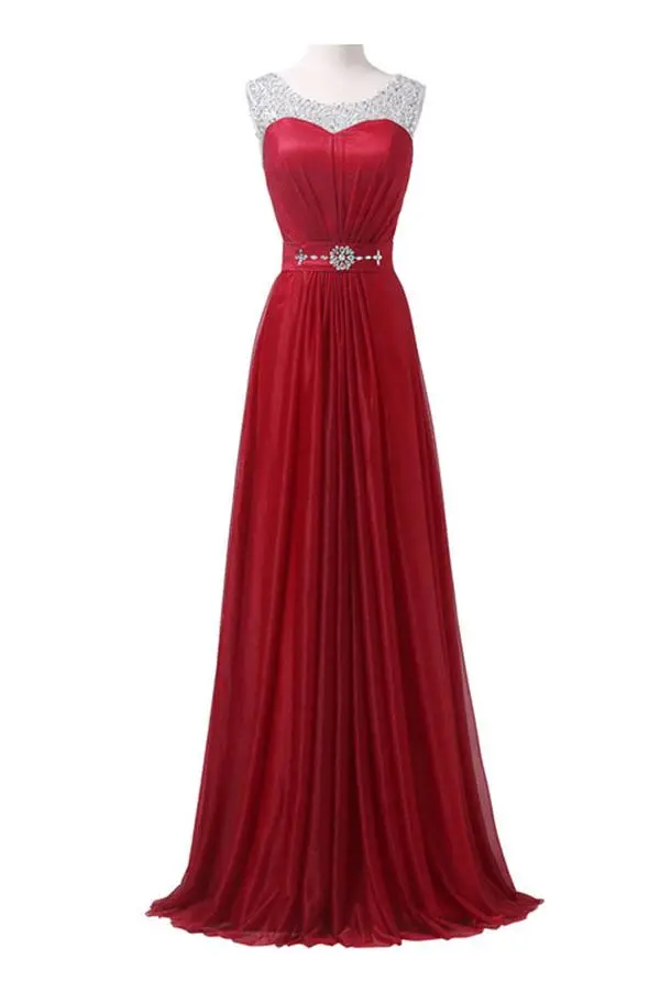 Red Long Beading Sparkly Modest A-line Floor Length Prom Dresses K747