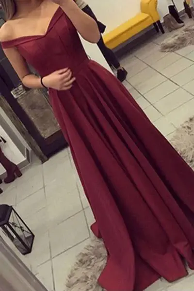 Simple Burgundy Off The Shoulder Long Prom Dresses/Evening Gown DM133