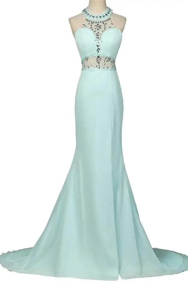Mint Halter Open Back Long Mermaid Charming Elegant Chiffon Prom Dresses K750