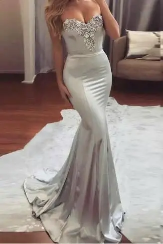 Mermaid Sweetheart Sweep Train Silver Formal stunning Long Prom Dresses,Formal Evening Dress DM244