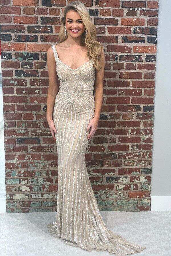 Sexy Mermaid Sparkly Straps Prom Dresses, Sequin Party Dress DMJ80