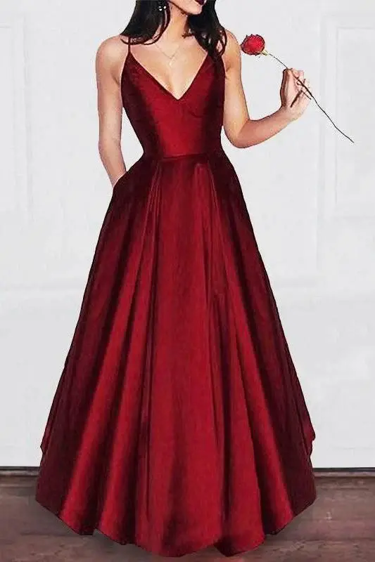Charming A Line V Neck Satin Spaghetti Straps Long Prom Dress,Girls Graduation Dresses DMB29