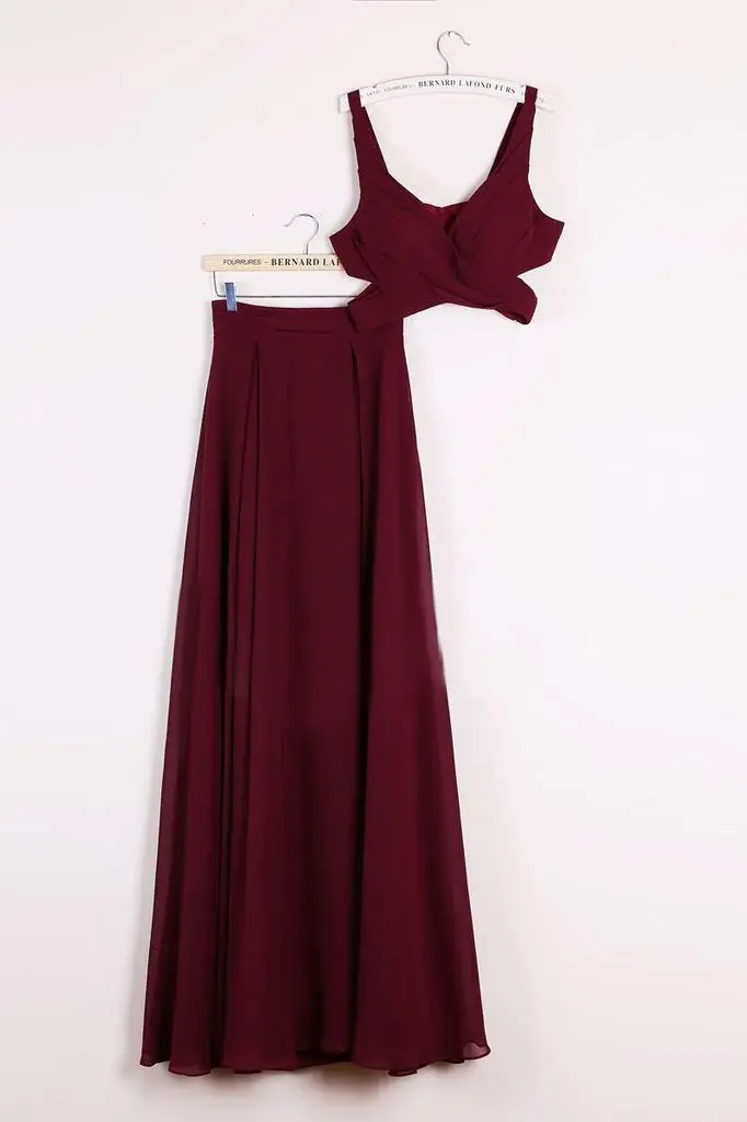 Charming Two Pieces Long A-line Burgundy Beauty Prom Dresses K738