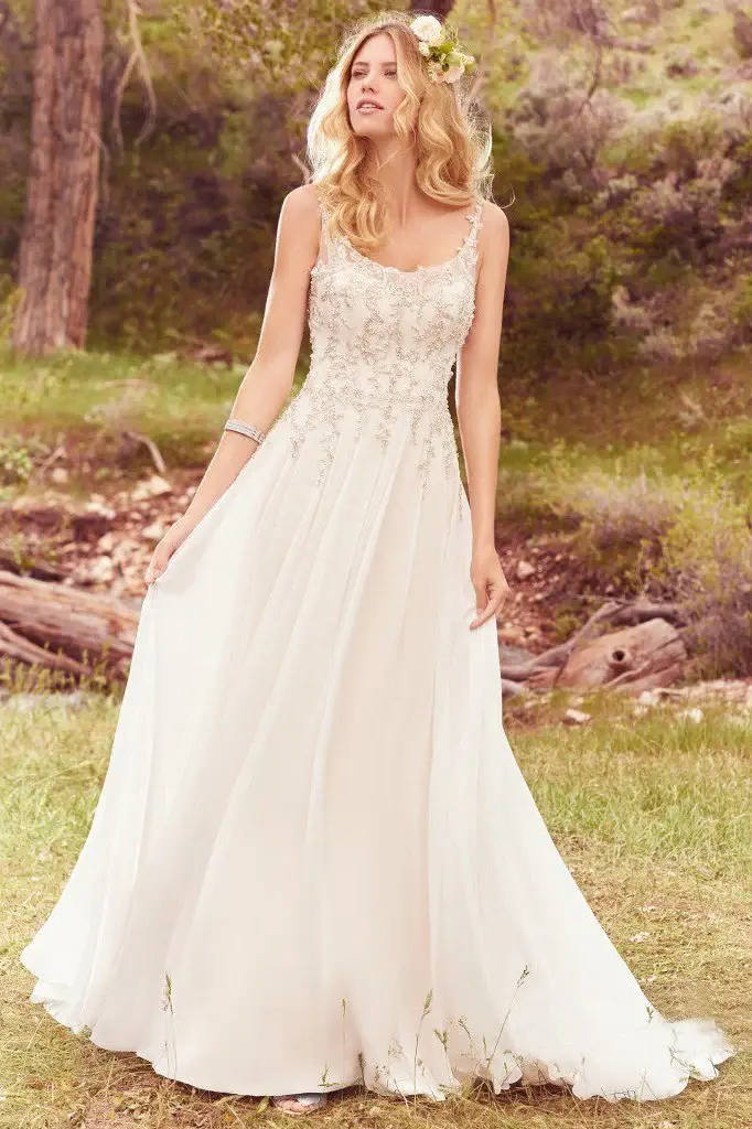 Spaghetti Strap Ivory Wedding Dress A Line Beaded Bridal Gowns DMP85