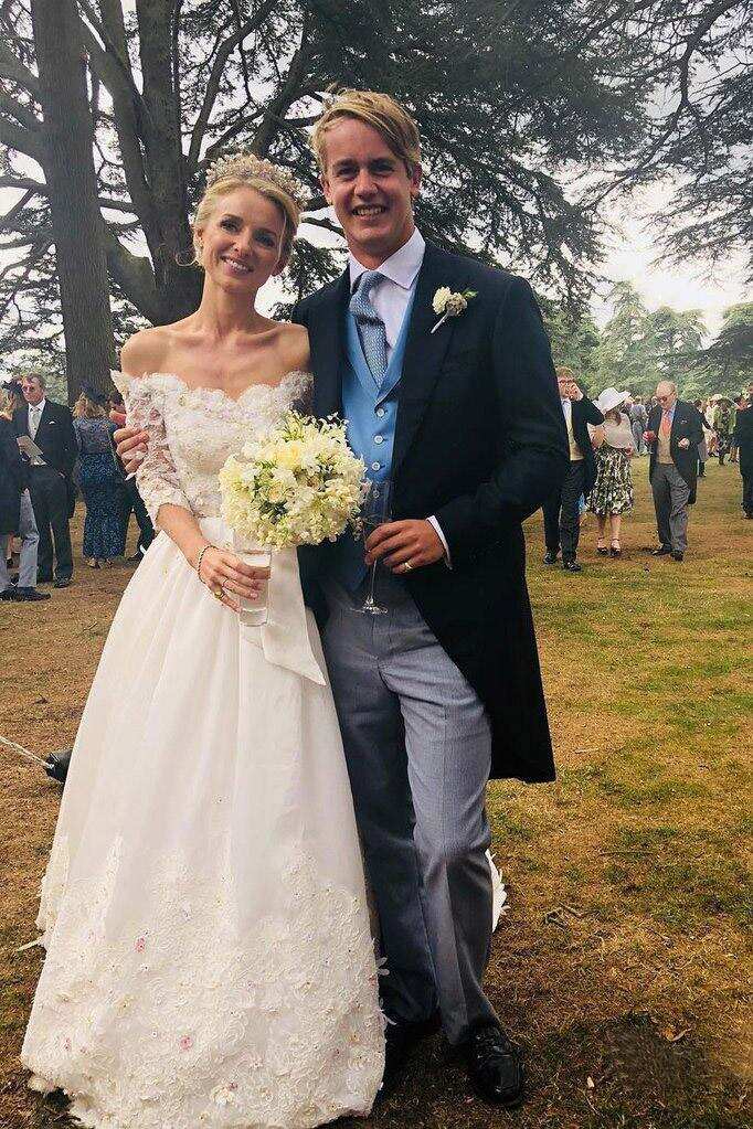 Off the Shoulder Long Sleeves Wedding Dresses With Cathedral Train DMP83