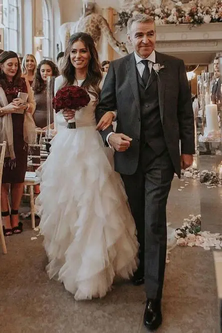A-Line Bateau Long Sleeves Ruffles Tulle Elegant Wedding Dress DMS30