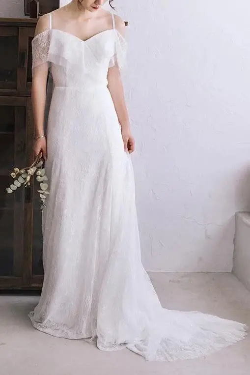 Spaghetti Straps Lace A Line Boho Beach Wedding Dress Simple Bridal Gown DMH82