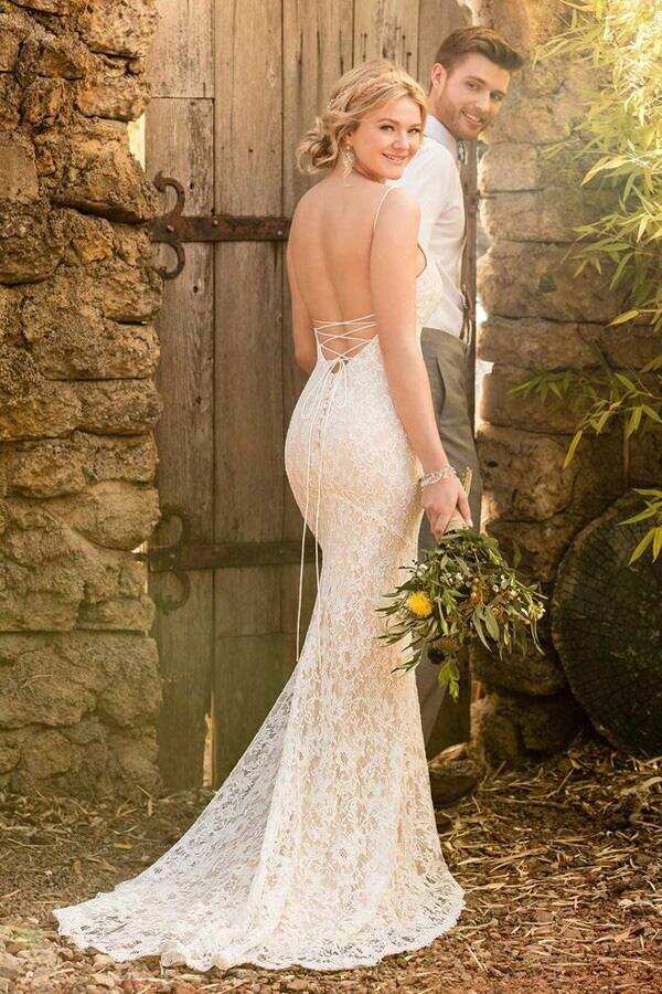Mermaid Spaghetti Straps Backless Ivory Lace Wedding Dress DML61