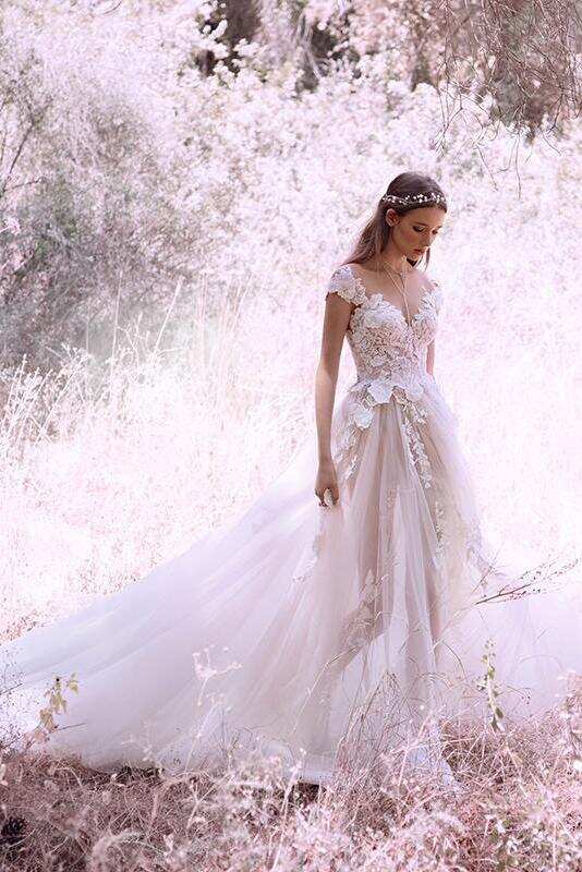 Princess Ivory Cap Sleeve Tulle Long Cheap Wedding Dresses DMM84