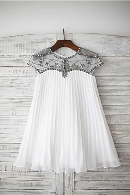 Chiffon A-line Scoop Cap Sleeves Beading Floor-Length Flower Girl Dresses DM727