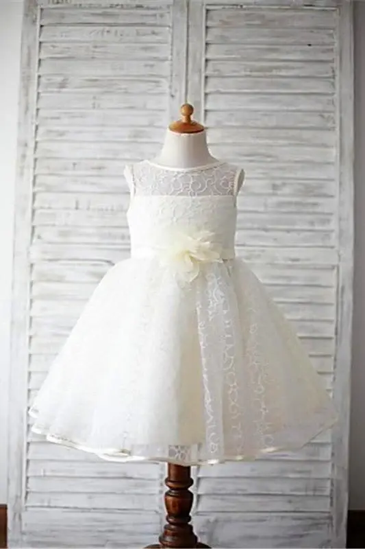 Ball Gown Scoop Sleeveless Flower Floor-Length Lace Flower Girl Dresses With Flower DM724