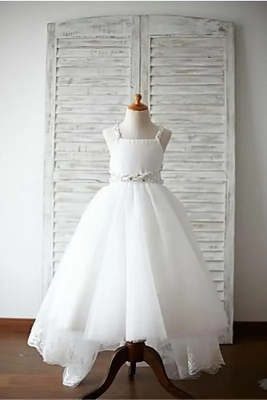 A-line/Princess Spaghetti Straps Sleeveless Beading Organza Flower Girl Dresses With Lace DM721