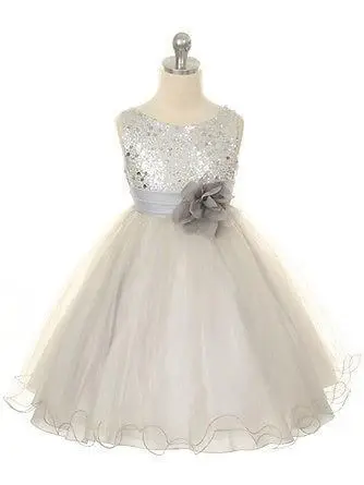 Royal Blue A-line Jewel Sleeveless Tulle Sequin Long Flower Girl Dresses DM703