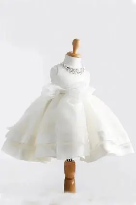 White Ball Gown Jewel Sleeveless Bowknot Long Satin Flower Girl Dresses DM700