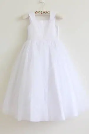 White Tulle Straps Long Simple Baby Girl Dress/Flower Girl Dresses DM208