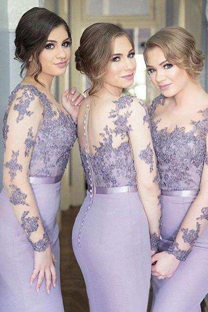 Long Sleeves Mermaid Lilac Sexy Long Bridesmaid Dress,Pretty Plus Size Bridesmaid Dress DM172