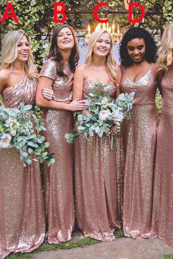 Mismatched Rose Gold A Line Sequin Long Bridesmaid Dresses DMD57