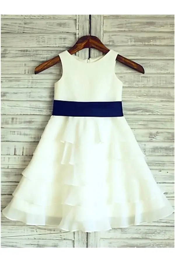 Ivory A-line Sleeveless Scoop Ruffles Floor-Length Flower Girl Dresses DM715
