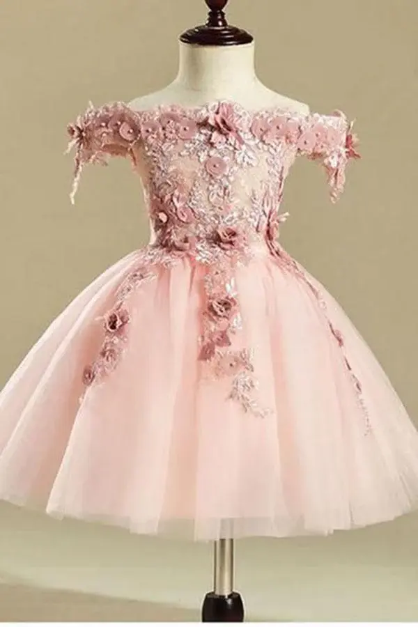 Pink Embroidery Flower Girl Dresses,Tulle Short Girl Dresses DMJ25