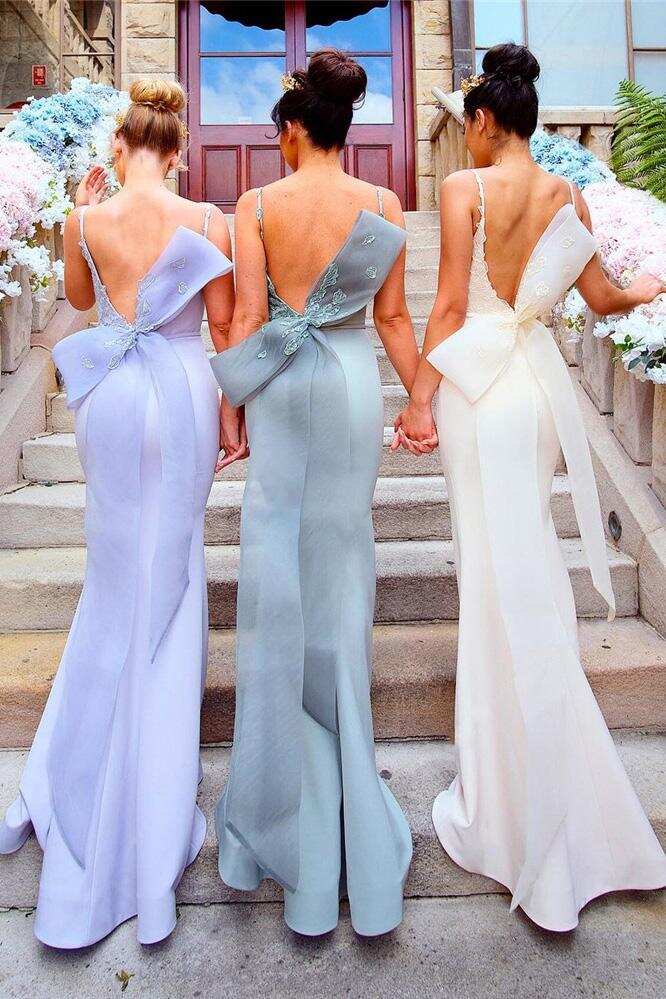 Appliqued Straps Mermaid Bridesmaid Dress with Bow DMN4
