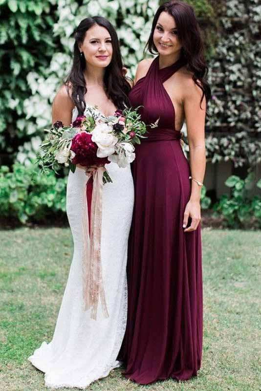 Fashion Burgundy A-Line Halter Backless Chiffon Bridesmaid Dresses with Sash DMD65