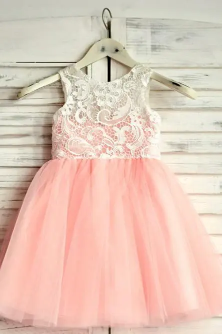 A-Line Round Neck Floor-Length Pink Flower Girl Dress with Lace DMP19
